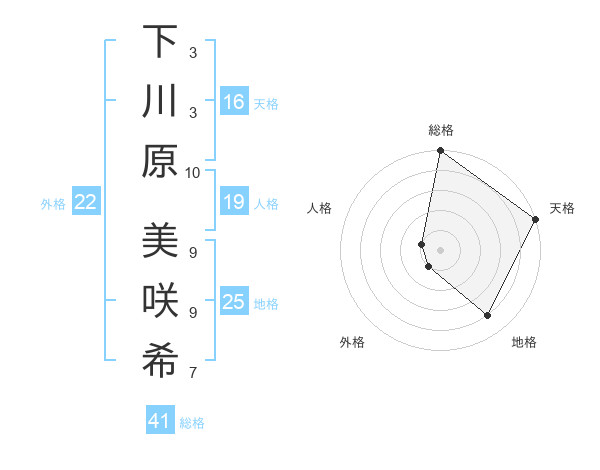 下川原 美咲希さんの天格は16画の5点!