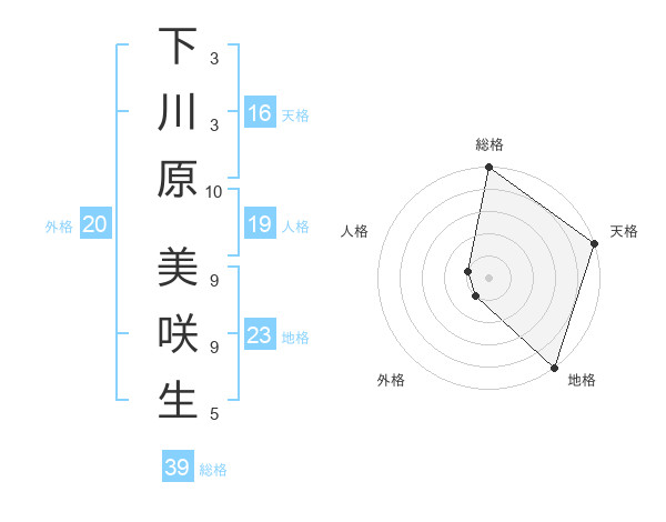 下川原 美咲生さんの総格は39画の5点!