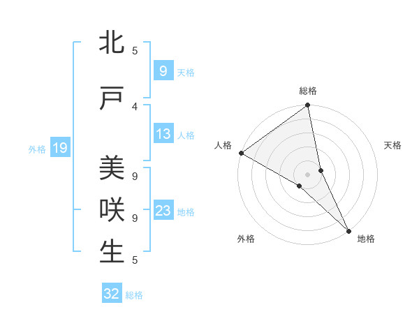 北戸 美咲生さんの地格は23画の5点!