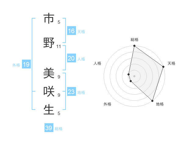 市野 美咲生さんを姓名の画数から五運を鑑定
