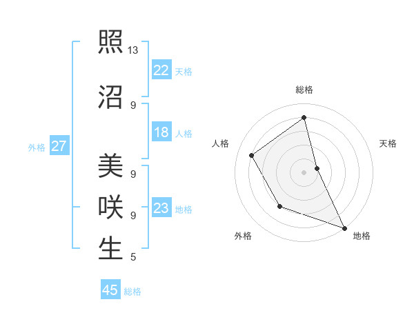 照沼 美咲生さんを姓名の画数から五運を鑑定