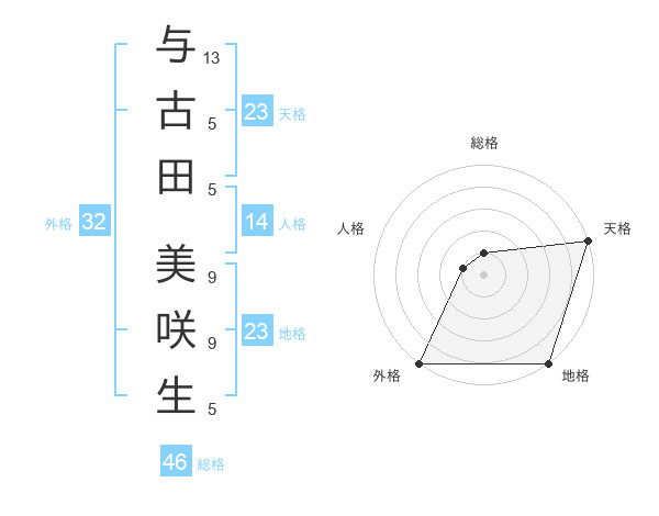 与古田 美咲生さんを姓名の画数から五運を鑑定