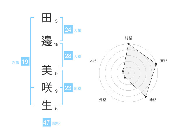 田邊 美咲生さんを姓名の画数から五運を鑑定
