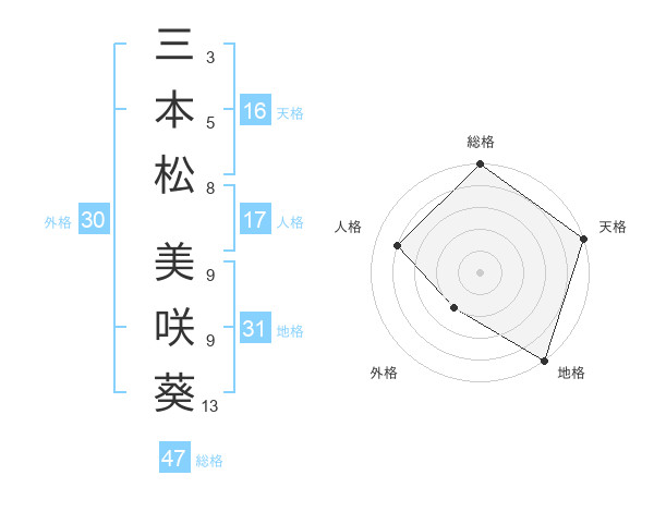 三本松 美咲葵さんを姓名の画数から五運を鑑定