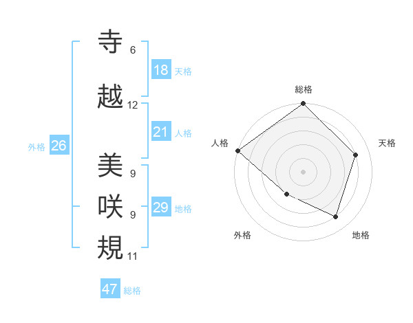 寺越 美咲規さんの総格は47画の5点!
