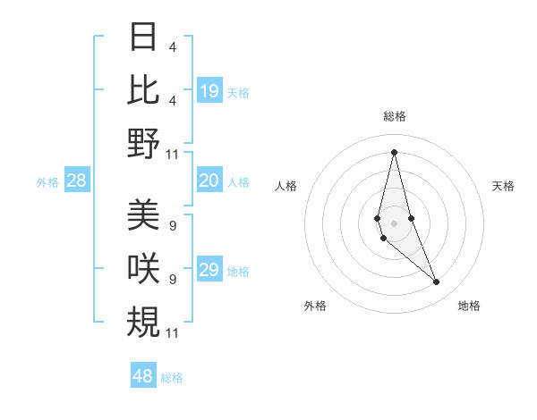 日比野 美咲規さんの地格は29画の4点!