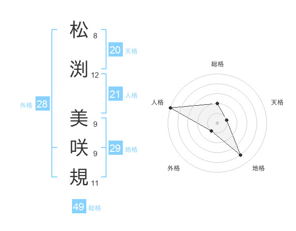 松渕 美咲規さんの総格は49画の2点!