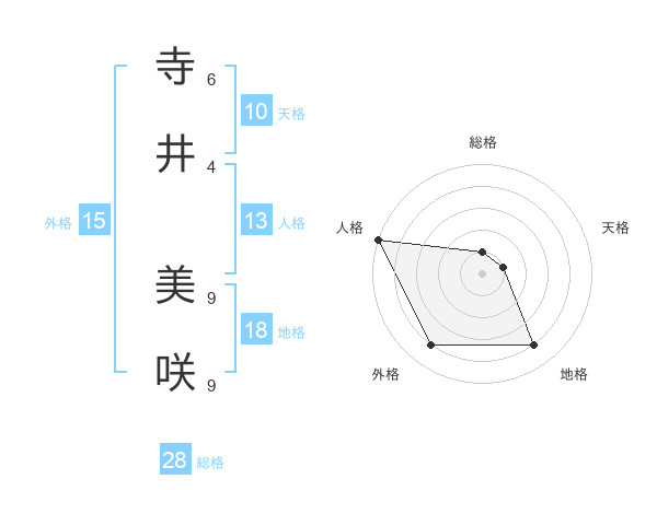 寺井 美咲さんを姓名の画数から五運を鑑定