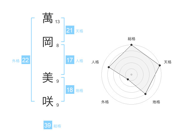 萬岡 美咲さんを姓名の画数から五運を鑑定