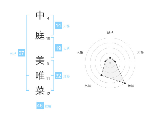 中庭 美唯菜さんの地格は32画の5点!