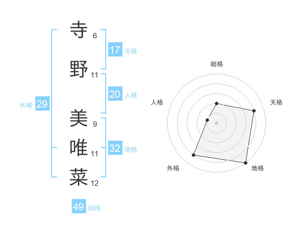 寺野 美唯菜さんの総格は49画の2点!