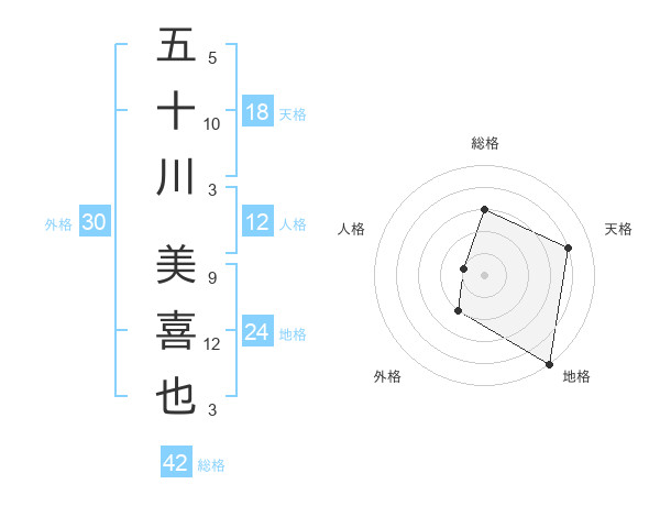 五十川 美喜也さんを姓名の画数から五運を鑑定