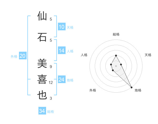 仙石 美喜也さんを姓名の画数から五運を鑑定