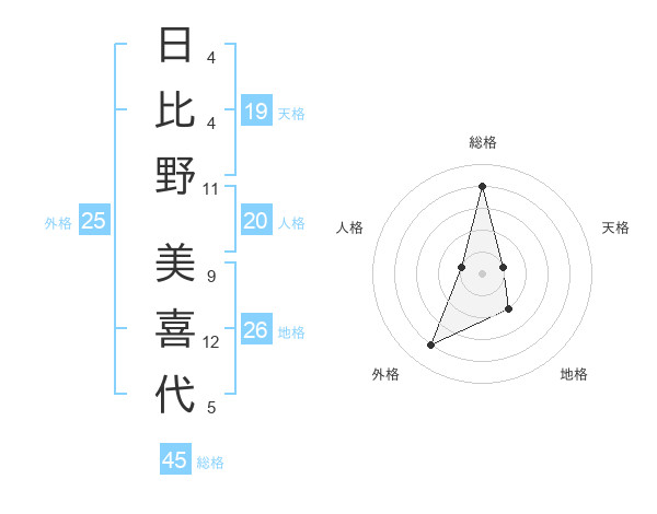 日比野 美喜代さんを姓名の画数から五運を鑑定