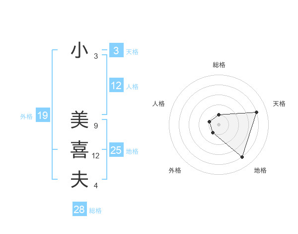 小 美喜夫さんを姓名の画数から五運を鑑定