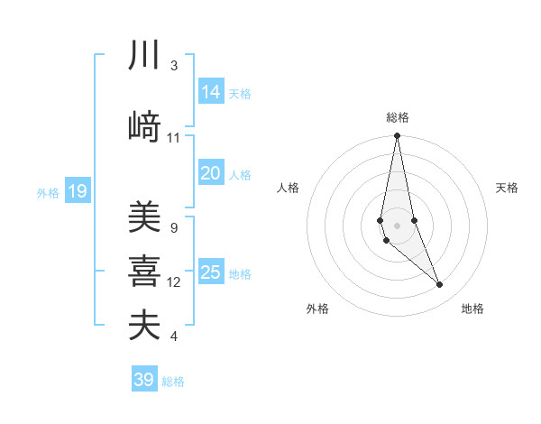 川﨑 美喜夫さんを姓名の画数から五運を鑑定