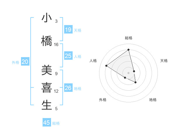 小橋 美喜生さんを姓名の画数から五運を鑑定