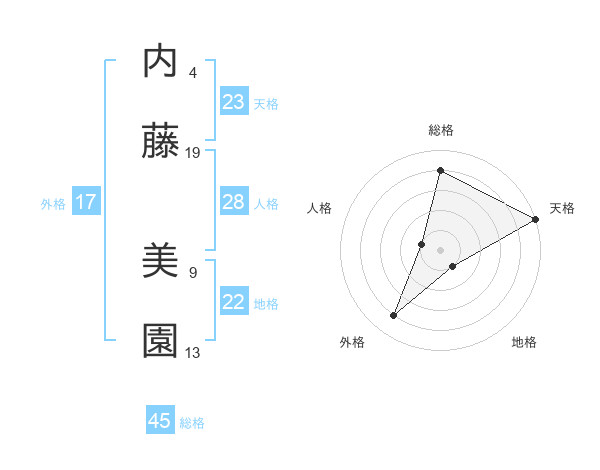 内藤 美園さんの総格は45画の4点!