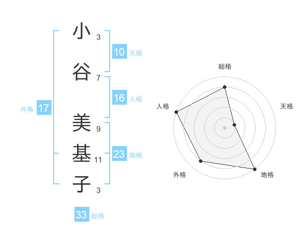 小谷 美基子さんの地格は23画の5点!