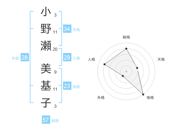 小野瀬 美基子さんの総格は57画の4点!