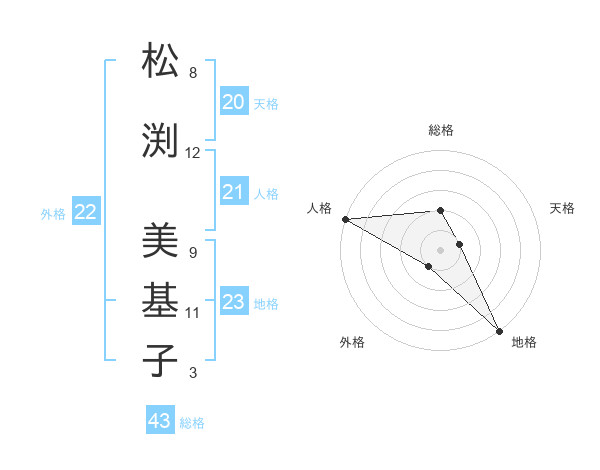 松渕 美基子さんを姓名の画数から五運を鑑定