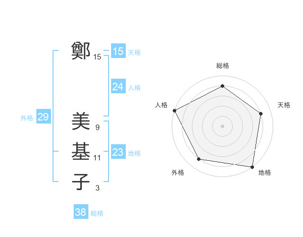 鄭 美基子さんを姓名の画数から五運を鑑定