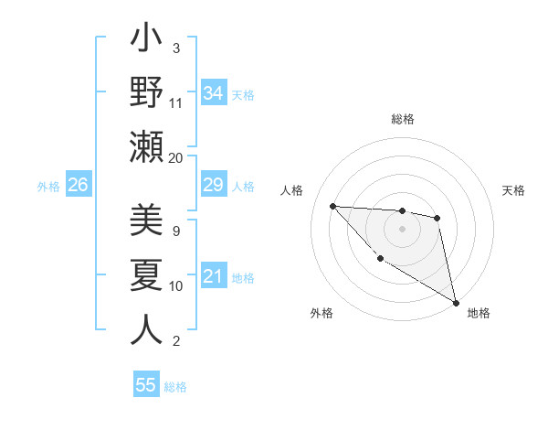小野瀬 美夏人さんを姓名の画数から五運を鑑定