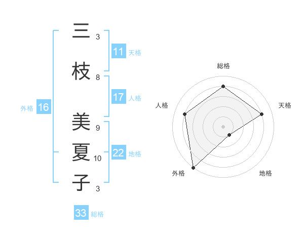 三枝 美夏子さんを姓名の画数から五運を鑑定