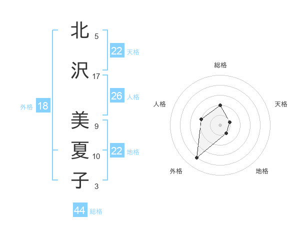 北沢 美夏子さんを姓名の画数から五運を鑑定