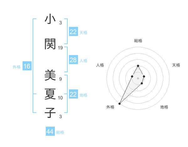 小関 美夏子さんを姓名の画数から五運を鑑定