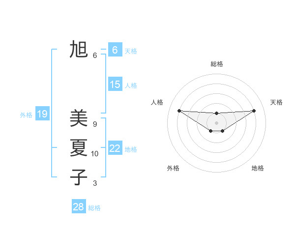 旭 美夏子さんの総格は28画の1点!