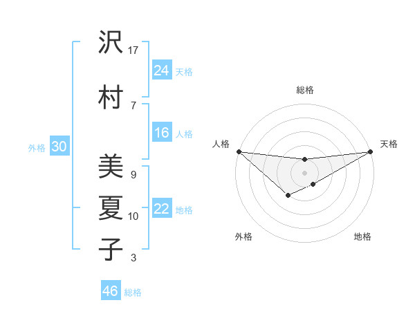 沢村 美夏子さんを姓名の画数から五運を鑑定