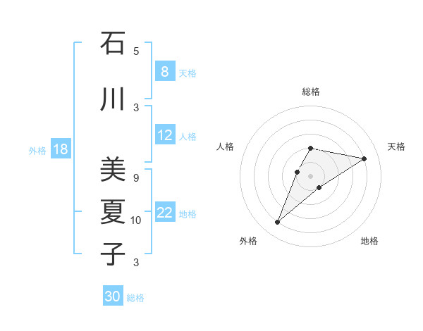 石川 美夏子さんを姓名の画数から五運を鑑定
