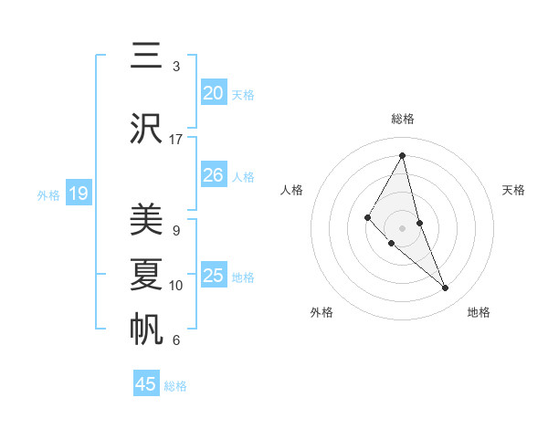 三沢 美夏帆さんの総格は45画の4点!
