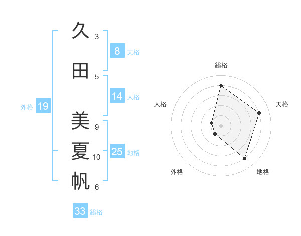久田 美夏帆さんの総格は33画の4点!