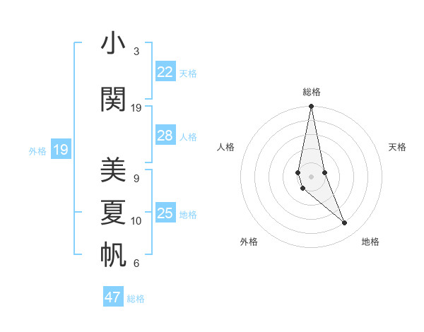 小関 美夏帆さんを姓名の画数から五運を鑑定