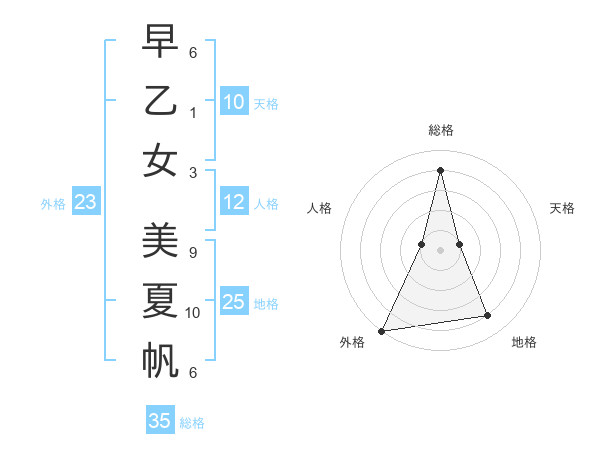 早乙女 美夏帆さんの総格は35画の4点!