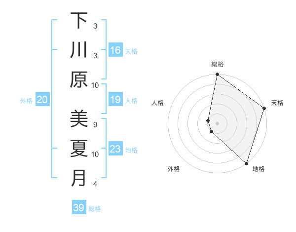 下川原 美夏月さんを姓名の画数から五運を鑑定