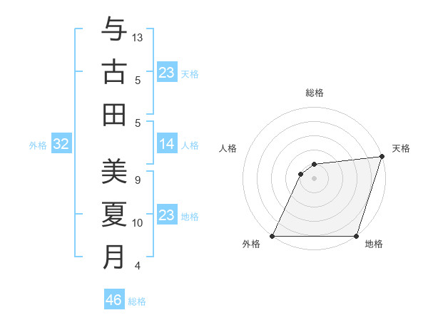 与古田 美夏月さんを姓名の画数から五運を鑑定
