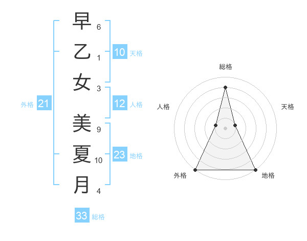 早乙女 美夏月さんを姓名の画数から五運を鑑定