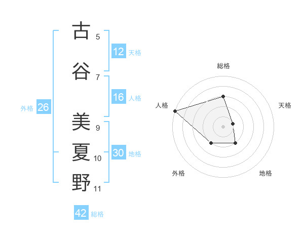 古谷 美夏野さんの総格は42画の3点!