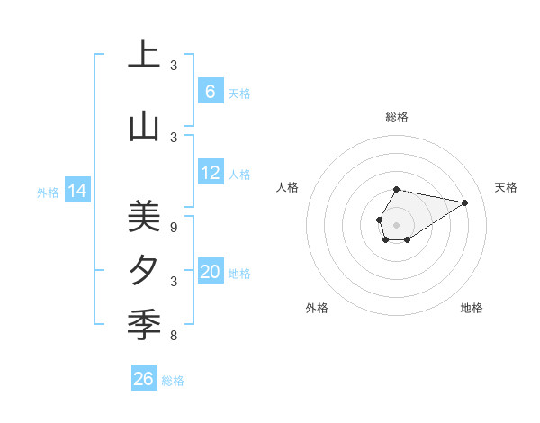上山 美夕季さんを姓名の画数から五運を鑑定