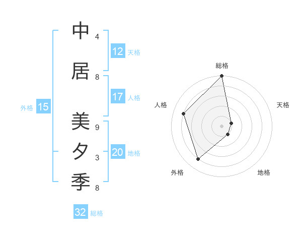 中居 美夕季さんを姓名の画数から五運を鑑定