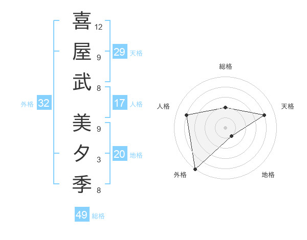 喜屋武 美夕季さんの総格は49画の2点!