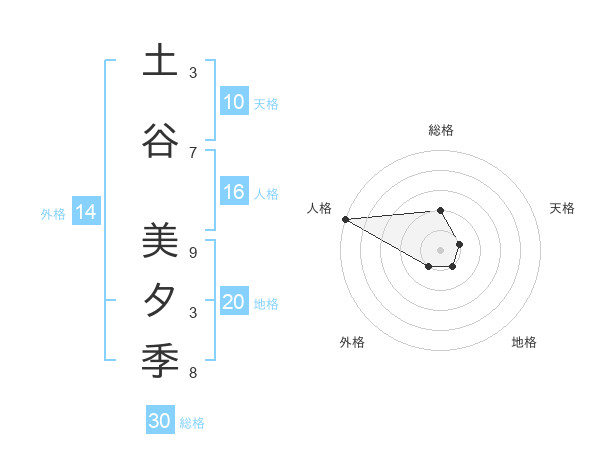 土谷 美夕季さんの総格は30画の2点!