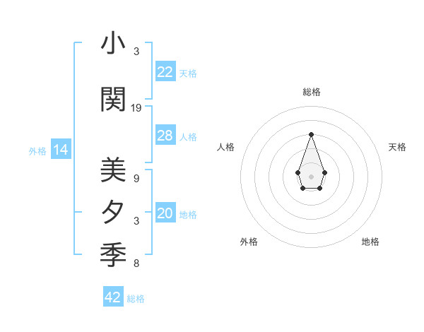 小関 美夕季さんを姓名の画数から五運を鑑定