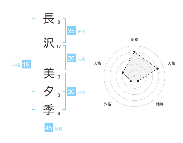 長沢 美夕季さんを姓名の画数から五運を鑑定