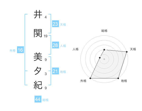 井関 美夕紀さんの総格は44画の2点!