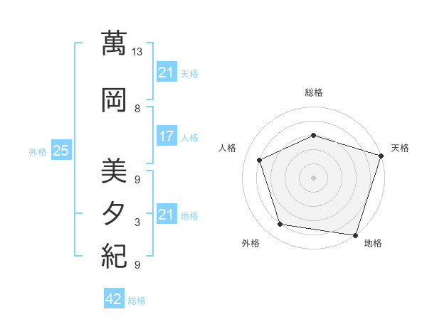 萬岡 美夕紀さんを姓名の画数から五運を鑑定