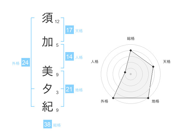 須加 美夕紀さんの外格は24画の5点!